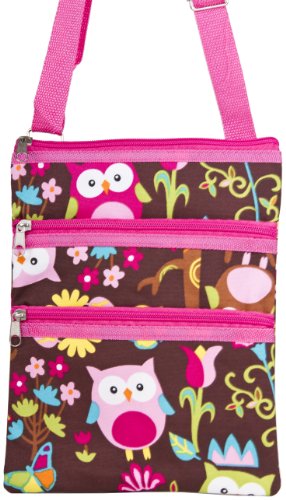 Colorful Owl Small Hipster Cross Body Shoulder Bag Purse Handbag with Pink Trim an interesting product that have many advantages, 2 Front zipper pockets