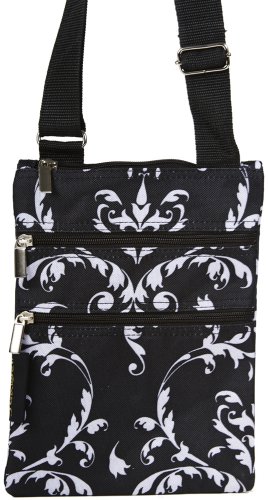 J Garden Black Damask Small Hipster Cross Body Shoulder Bag an interesting product that have many advantages, Timeless and chic, this shoulder bag is ideal for any age. This petite pack is a cute size for a casual but fun on-the-go purse and has an adjustable shoulder strap for a customizable fit. The slim, sophisticated crossbody design is the perfect size for holding all that you need and has two exterior front zip pockets to keep smaller items conveniently located for superior functionality. In a fashionable designer print with bow detail, it's a great addition to any outfit and is sure to get you noticed when out and about. With a fully linen lined interior, it's easy to keep this bag clean. Made out of durable canvas, this compact, versatile satchel is great to just throw over your shoulder and go!.