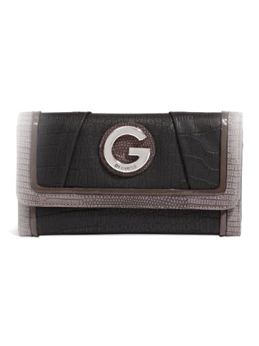 G by GUESS Women's Imara Checkbook Wallet, BLACK MULTI complete with many advantages, Ultra-cool textures, a place to hold everything and the logo you love: this checkbook-wallet combo is a total hit. Keep it close at hand for a stylishly organized look. Faux-leather exterior with croc-embossed detail. Silver-tone hardware. Front logo plaque Tri-fold design 15 credit card slots 1 clear ID window 3 bill pockets Includes a checkbook cover 7 ½"W x 4 ½"H Women's > Handbags > Wallets.