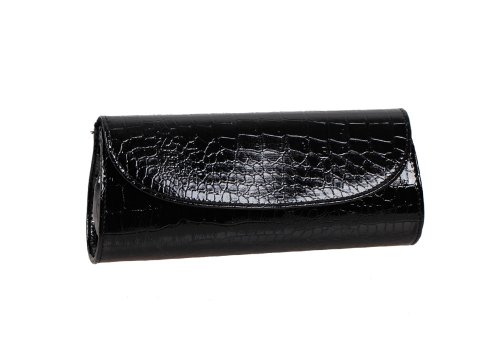 Bundle Monster Womens Envelope Evening Patent Croc Skin Embossed Clutch - BLACK have many advantages, A beautiful evening clutch is the only way to go when you are parting the night away, going to a fancy event or wedding. Our clutch comes in: Midnight Black. This shiny patent leather clutch has a croc skinned embossed outter that is highly fashionable. Its envelope flap front has a magnetic clasp closure and opens to a functional partitioned purse with a center zipped compartment which is great for personal items, cash or cards and a small side wall zippered compartment. The clutch can convert into additional styles with its strap styles: (1) Chain Strap Handbag - allow you to keep your purse close to your body without holding it in your hand -Short Strap Drop: 19.1" (Approx) and (2) Long Shoulder Strap - This hands free option lets your bag hang low or across your chest - Length Strap Drop: 49.5"(Approx). NOTE: Due to differences between monitor displays, actual color may vary slightly from image. Bundle Monster is a registered trademark of Remi Collections LLC and is exclusively dis.
