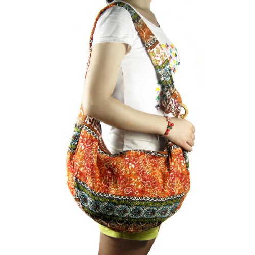 kilofly Bohemian Cloth Crossbody Shoulder Bag, Adjustable Strap, MiMi Orange Floral new products that have many advantages, kilofly Bohemian Cloth Crossbody Bag, MiMi Series is made of cotton cloth with a unique Bohemian artistic look. With a knot tied to the small wooden ring, you can adjust the shoulder strap length, easily convert to a shoulder bag or crossbody. The wide strap lessens the pressure on your shoulder and top zipper assures the security of your personal belongings with inside pockets for sort and separation. It is perfect for school, daily outdoor activities like carrying books, laptops, personal belongings, grocery shopping or while travelling. Washing Instruction: Hand wash separately in cold water and avoid soaking; Inner denim texture may fade from frequent washing.