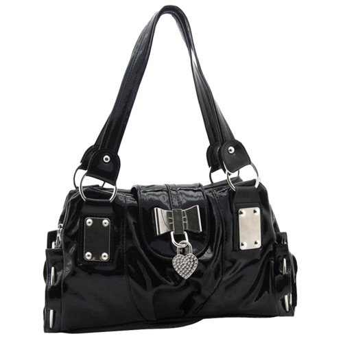 MG Collection SEY Black Bow Heart Lock PU Patent Leather Hobo Shoulder Bag have many advantages, A little luxury goes a long way. Make a bold but sweet statement with our SEY medium satchel in brilliant black and rich silvertone hardware. Large O ring hardware encircles each side of the handbag purse to create a stunning one of a kind design. Gorgeous ornamental bow and heart shaped lock conceals a magnetic flap closure. Items are extra secure with two zippered main compartments that opens up to a fully lined fabric interior. Front compartment includes an open flap pocket to hold your cell phone, makeup or any small accessory. Second compartment holds a back wall zippered pocket to keep your secret things in place. Double strap handles offers a comfortable carrying. Pleat detailing at the front and back with zippered back wall pocket adds the finishing touches to this ravishing bowler satchel.*Due to monitor variations colors may appear slightly different.*Approximate Dimensions: Exterior - 12" L x 7" H x 4" W; Interior - 11"L x 6" H x 3" W; Handle - 8" drop**Official MG Collectio.