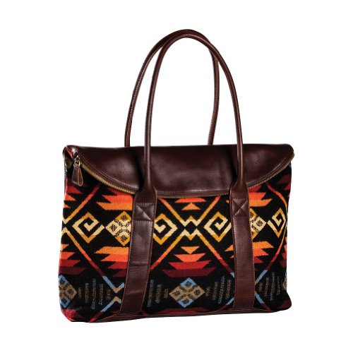 Pendleton Leather Tote (Coyote Butte Bright Black) complete with many advantages, Simply elegant bag features leather on one side.; On the other is wool jacquard fabric woven in our American mills.; The curved zip top folds over gently when bag is not completely filled.; Leather bottom and zipper pull. Inside zip pocket...