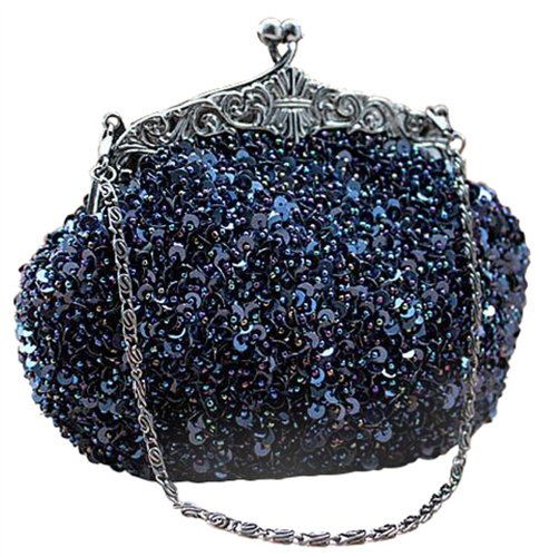 Chicastic Fully Sequined Mesh Beaded Antique Style Wedding Evening Formal Cocktail Clutch Purse - Blue complete with many advantages, Elegant clutch purse with sequins all over and chain string attached..