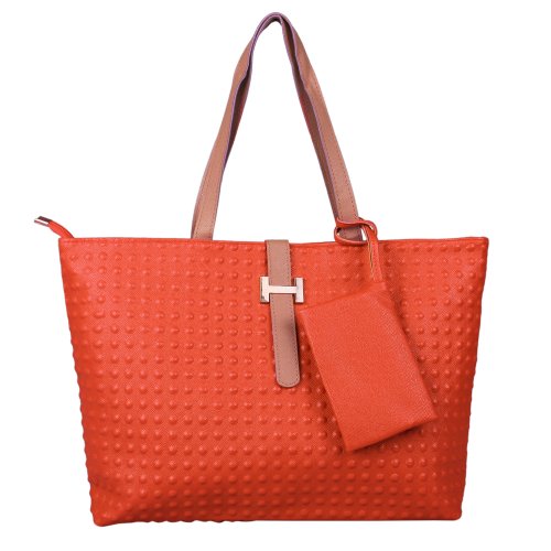 Product Rating : Classic Fashion Faux Leather Large Tote Bags with Coin Wallet (dot orange) is so good product.